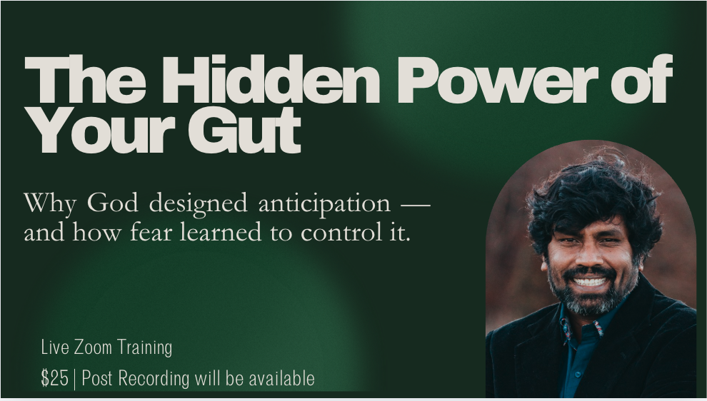 In this live masterclass, Ravi Kandal will teach how anticipation works in the body, how fear hijacks this God-given system, and how the Lord restores the gut to its original design — helping you respond to life with confidence, peace, and trust in His leading.